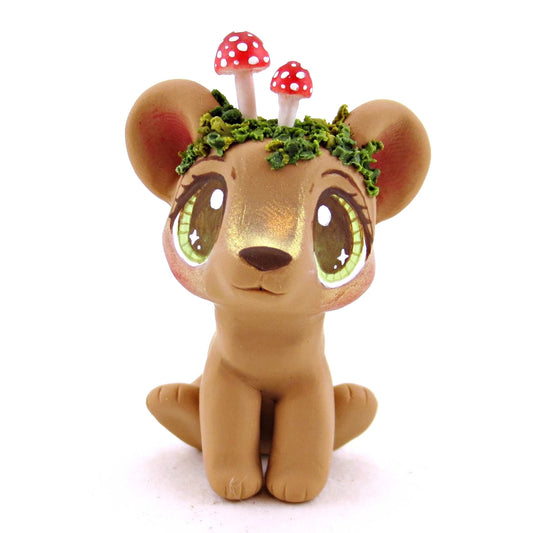 Mushroom Bear Cub Figurine - Polymer Clay Cottagecore Fall Animal Collection