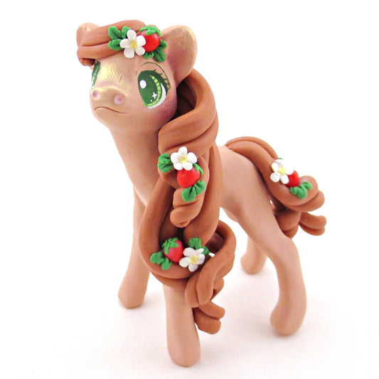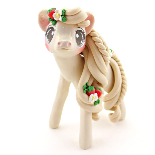 Strawberry Shine Pony Figurine - Polymer Clay Cottagecore Spring Animal Collection