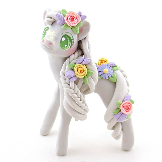 Floral Baby Grey Pony Figurine - Polymer Clay Cottagecore Spring Animal Collection