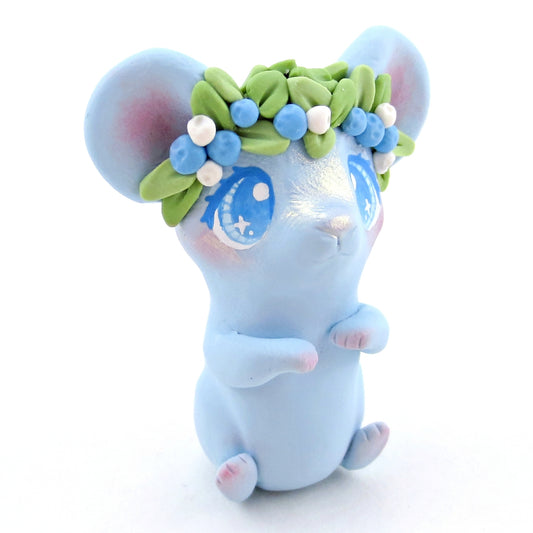 Blueberry Crown Mouse Figurine - Polymer Clay Cottagecore Spring Animal Collection