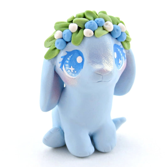 Blueberry Crown Bunny Figurine - Polymer Clay Cottagecore Spring Animal Collection