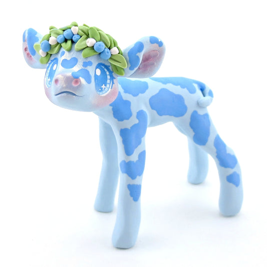 Blueberry Crown Cow Figurine - Polymer Clay Cottagecore Spring Animal Collection