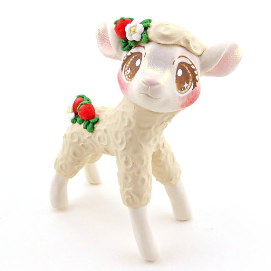 Strawberry Lamb Figurine - Polymer Clay Cottagecore Spring Animal Collection