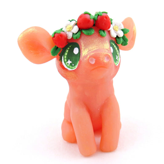 Strawberry Crown Piglet Figurine - Polymer Clay Cottagecore Spring Animal Collection
