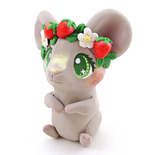 Strawberry Crown Mouse Figurine - Polymer Clay Cottagecore Spring Animal Collection