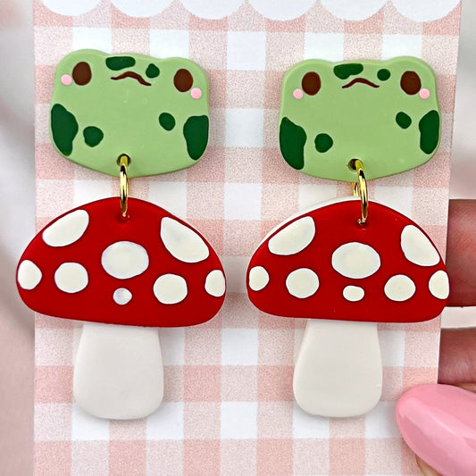 Spotty Frog and Mushroom Polymer Clay Earrings