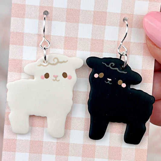 Mismatched Sheep Polymer Clay Earrings - Silver Hardware