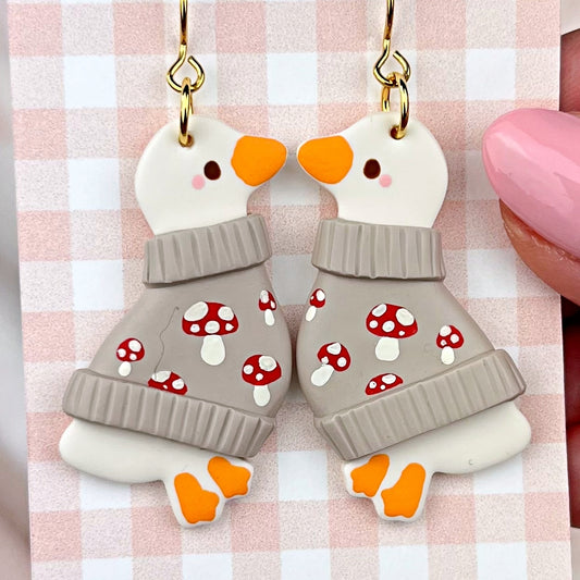 Mushroom Sweater Maisie the Goose Polymer Clay Earrings