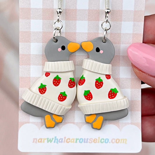 Strawberry Sweater Gracie the Grey Goose Polymer Clay Earrings
