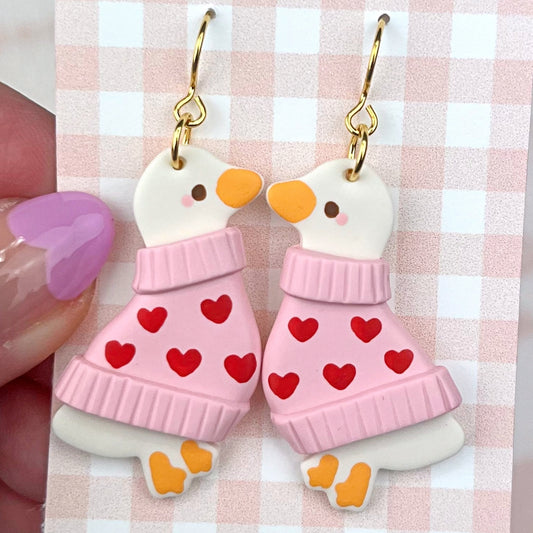 Heart Sweater Maisie the Goose Polymer Clay Earrings
