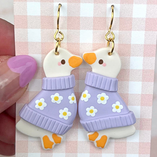 Daisy Purple Sweater Maisie the Goose Polymer Clay Earrings
