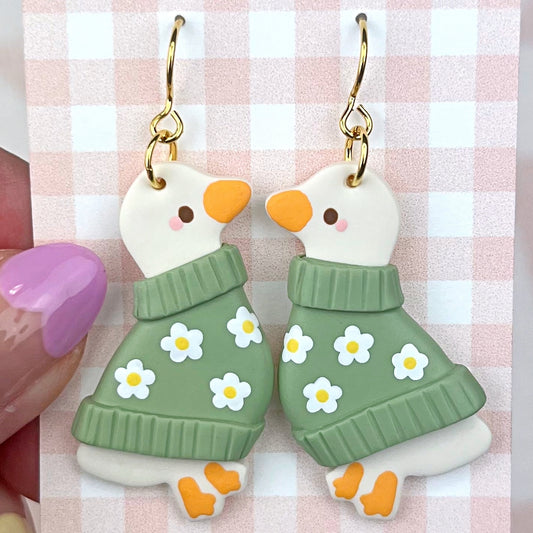 Daisy Sage Green Sweater Maisie the Goose Polymer Clay Earrings