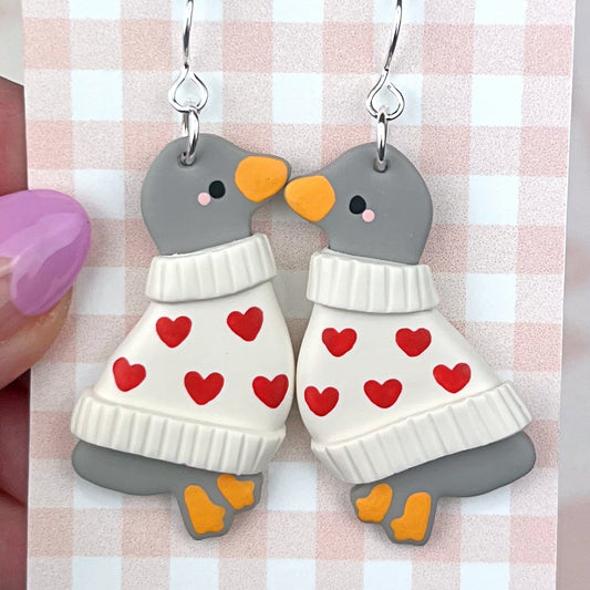 Heart Sweater Gracie the Grey Goose Polymer Clay Earrings