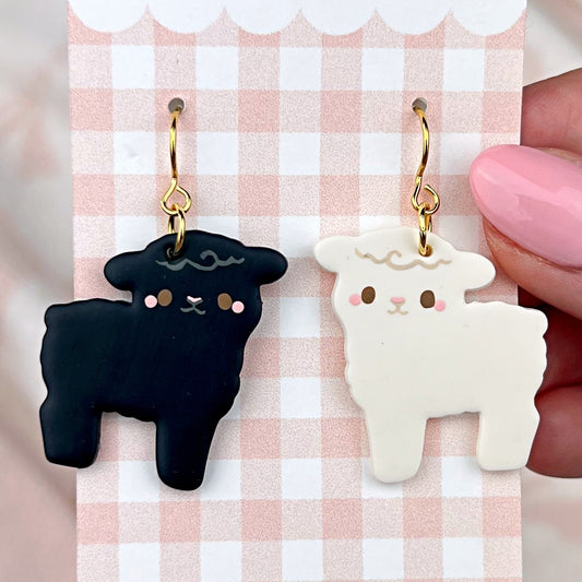 Mismatched Sheep Polymer Clay Earrings - Gold Hardware