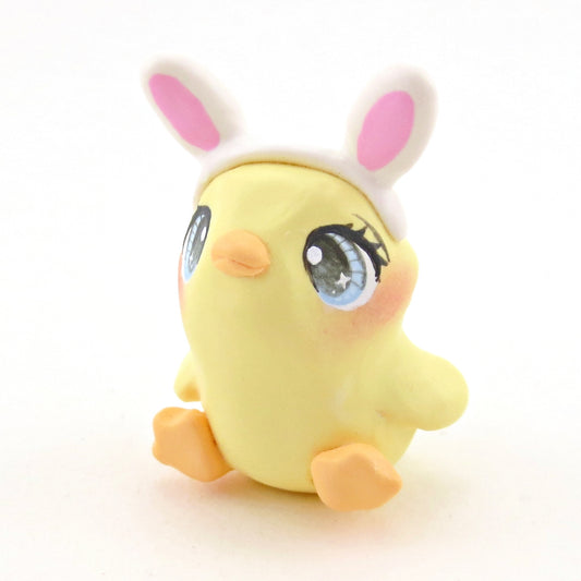 Blue-Eyed Chick with Bunny Ear Headband Figurine - Polymer Clay Easter Animal Collection