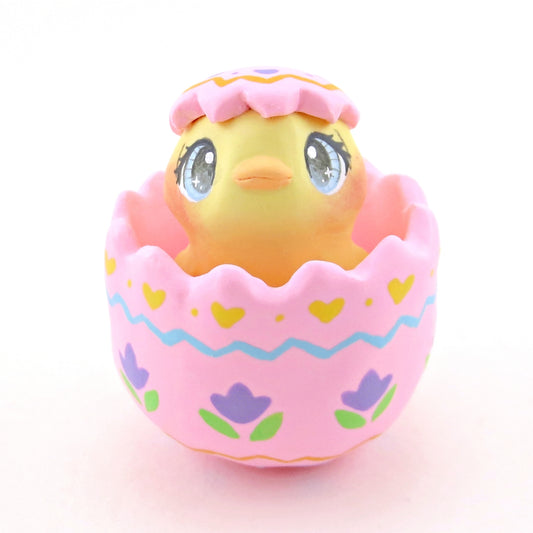 Chick in a Pink Easter Egg Figurine - Polymer Clay Easter Animal Collection
