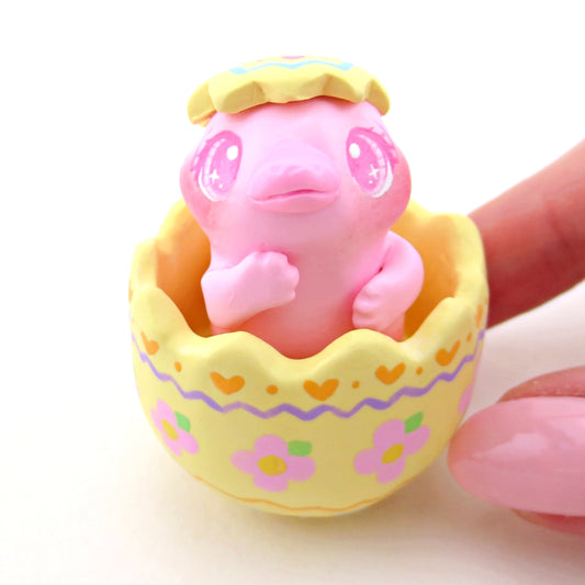 Pink Platypus in a Yellow Easter Egg Figurine - Polymer Clay Easter Animal Collection