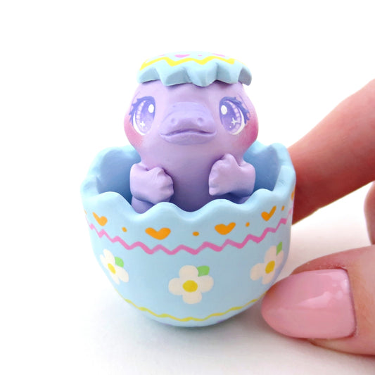 Purple Platypus in a Blue Easter Egg Figurine - Polymer Clay Easter Animal Collection