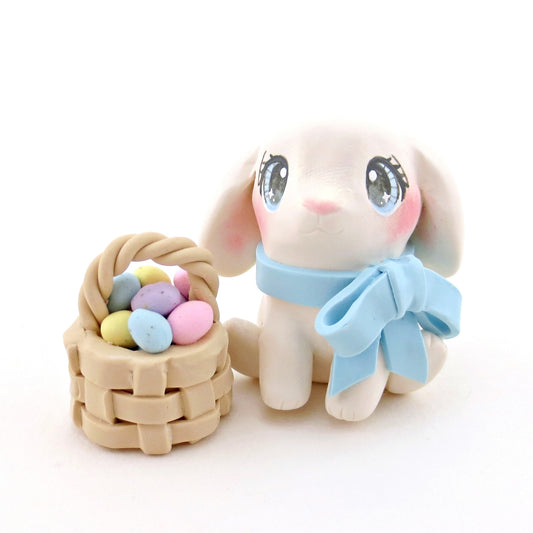 Lop-Eared Bunny with an Easter Basket Figurine - Polymer Clay Easter Animal Collection