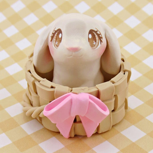 Lop Easter Bunny in Basket Figurine Set - Polymer Clay Easter Animal Collection