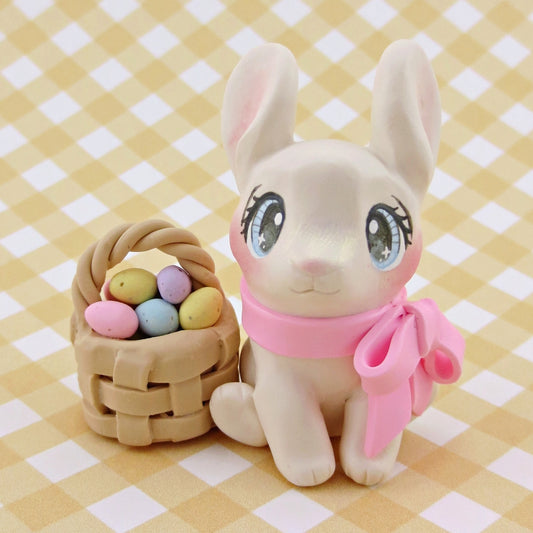 Bunny with an Easter Basket Figurine - Polymer Clay Easter Animal Collection