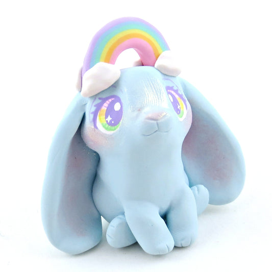 Cloud and Rainbow Air Winged Bunny Figurine - Polymer Clay Elementals Collection