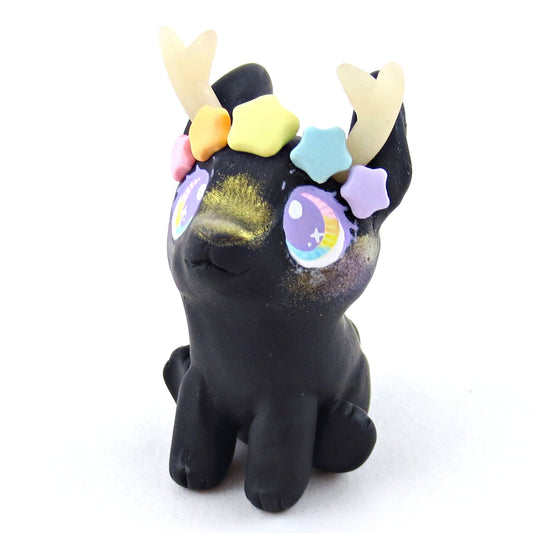 Rainbow Star Crown Night Jackalope Figurine - Polymer Clay Elementals Collection