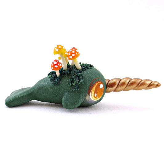 Mushroom Mossy Narwhal Figurine - Polymer Clay Fall Animals