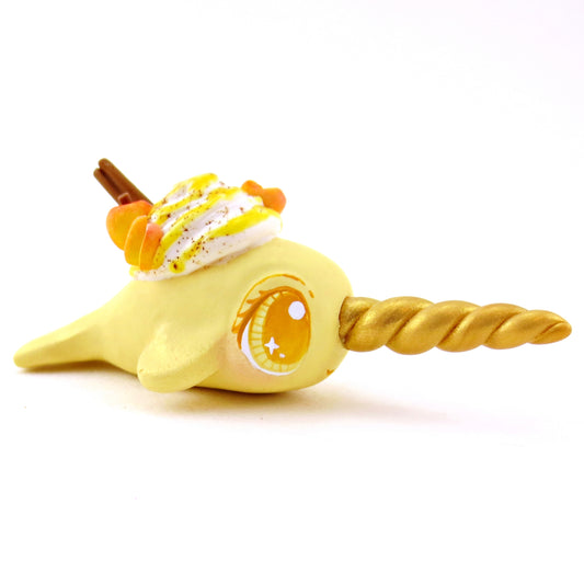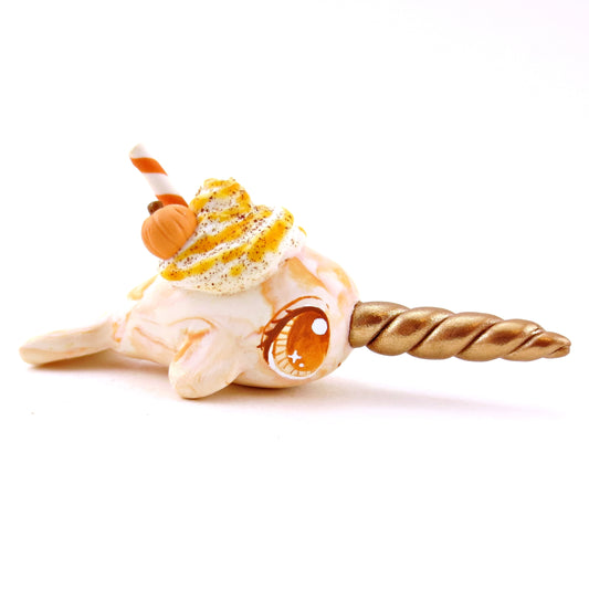 Pumpkin Spice Vanilla Swirl Narwhal Figurine - Polymer Clay Fall Animals
