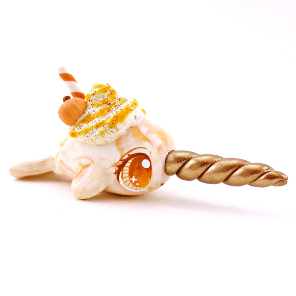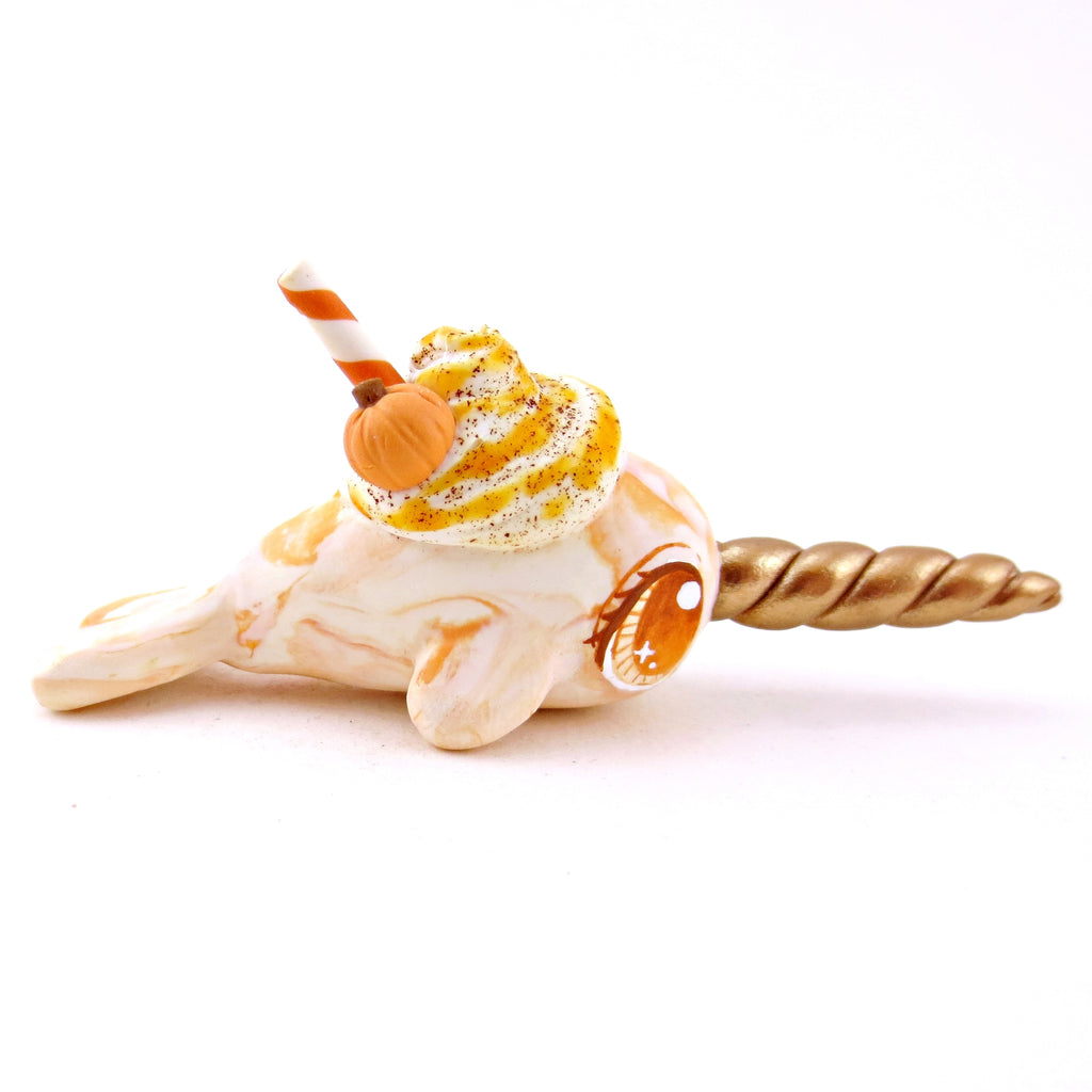 Pumpkin Spice Vanilla Swirl Narwhal Figurine - Polymer Clay Fall Animals