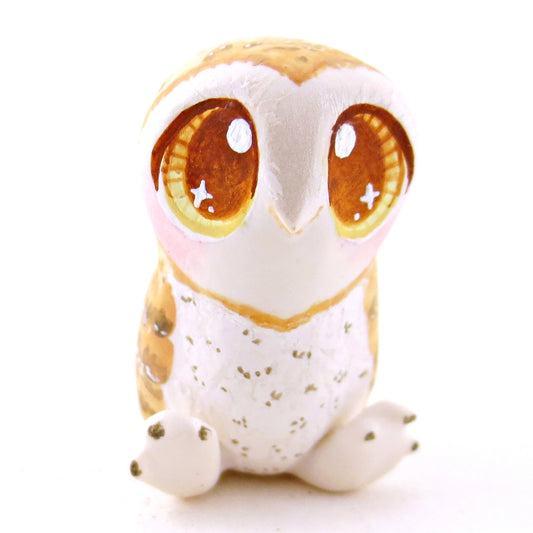 Amber-Eyed Barn Owl Figurine - Polymer Clay Fall Animals
