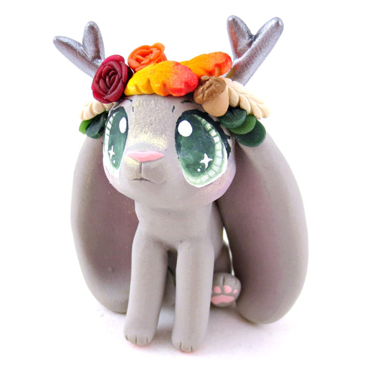 Fall Flower Crown Grey Jackalope Figurine - Polymer Clay Fall Animals