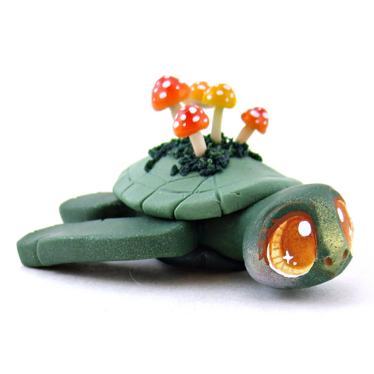 Mushroom Mossy Turtle Figurine - Polymer Clay Fall Animals