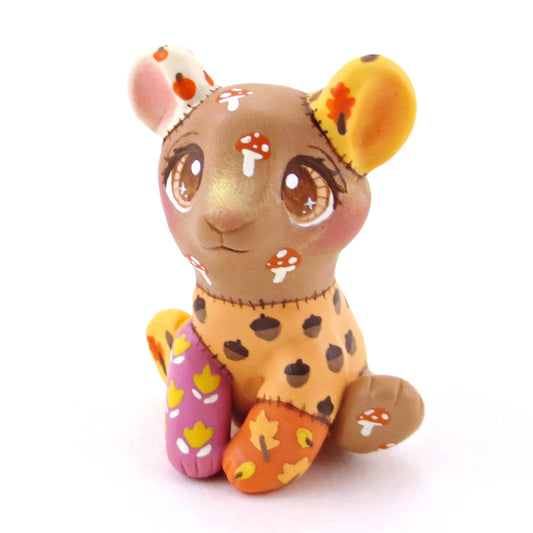 Patchwork Quilt Teddy Bear Cub Figurine - Polymer Clay Fall Collection