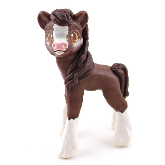 Bay Clydesdale Horse Figurine - Polymer Clay Spring Animal Collection