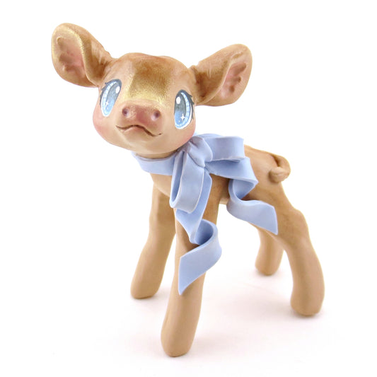 Jersey Cow with a Bow Figurine - Polymer Clay Spring Animal Collection