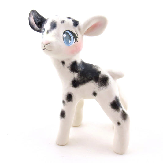 Black and White Spotty Baby Goat Figurine - Polymer Clay Spring Animal Collection