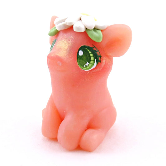 Piglet with a Daisy Hat Figurine - Polymer Clay Spring Animal Collection