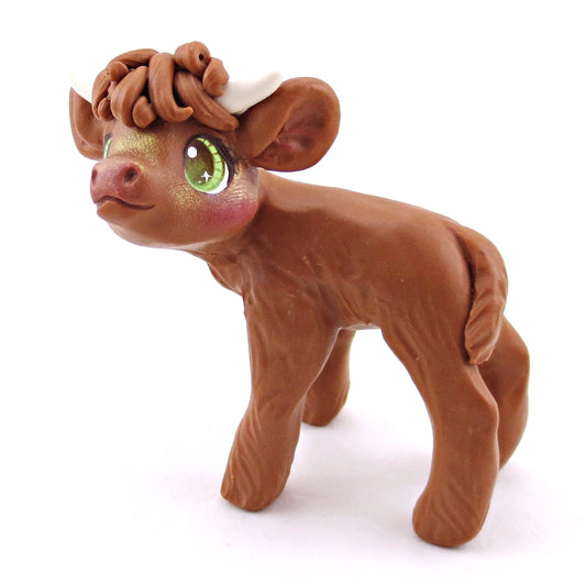 Brown-Eyed Highland Cow Figurine - Polymer Clay Spring Animal Collection