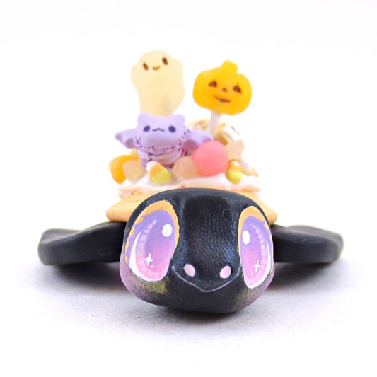 Black Halloween Dessert Turtle Figurine - Polymer Clay Spooky Season Animal Collection