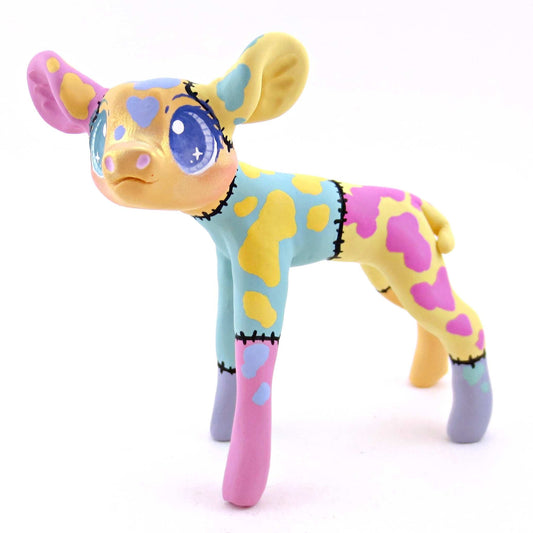 Patchwork Cow Figurine - Polymer Clay Spooky Season Animal Collection