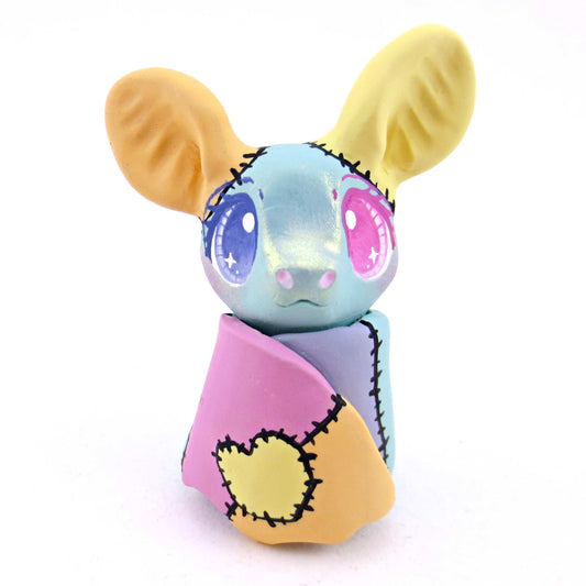 Patchwork Bat Figurine - Version 1 - Polymer Clay Spooky Season Animal Collection