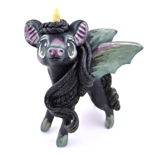 Green/Gold Color Shift Baticorn Unicorn Figurine - Polymer Clay Spooky Season Animal Collection