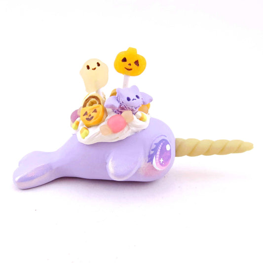 Purple Halloween Dessert Narwhal Figurine - Polymer Clay Spooky Season Animal Collection