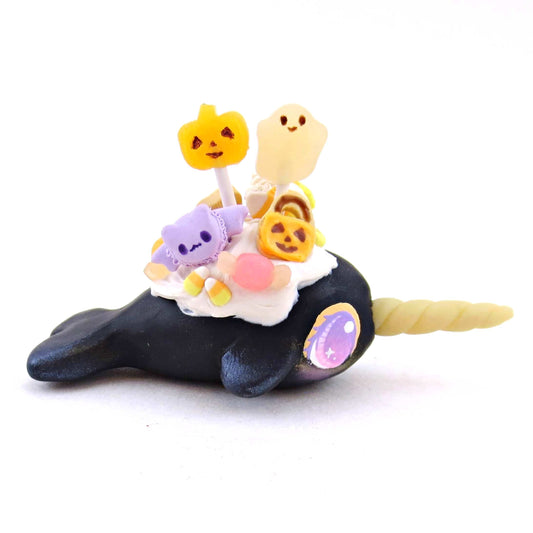 Black Halloween Dessert Narwhal Figurine - Polymer Clay Spooky Season Animal Collection