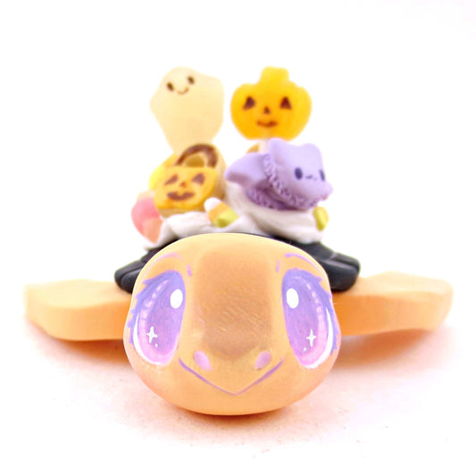 Orange Halloween Dessert Turtle Figurine - Polymer Clay Spooky Season Animal Collection