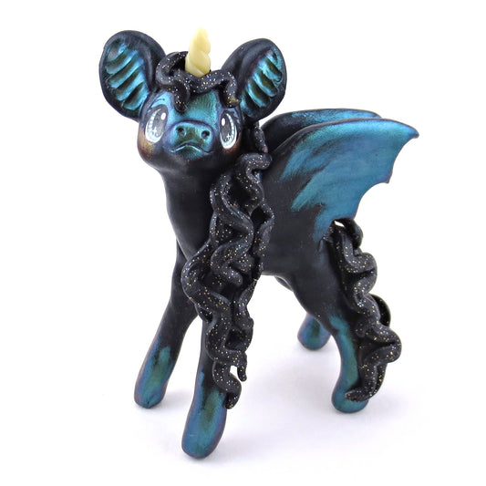 Green Color-Shift Baticorn Figurine - Polymer Clay Halloween Collection