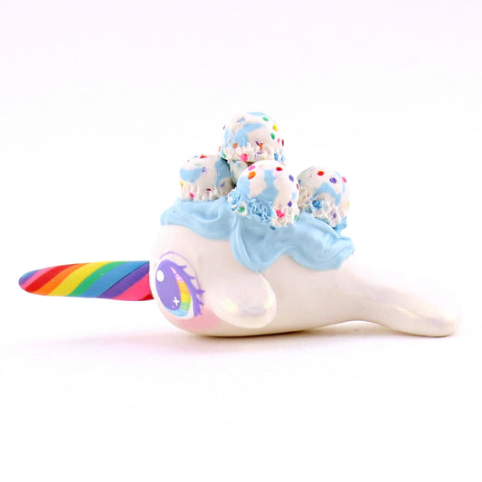 Rainbow Sherbet Ice Cream Narwhal Figurine - Polymer Clay Ice Cream Animals