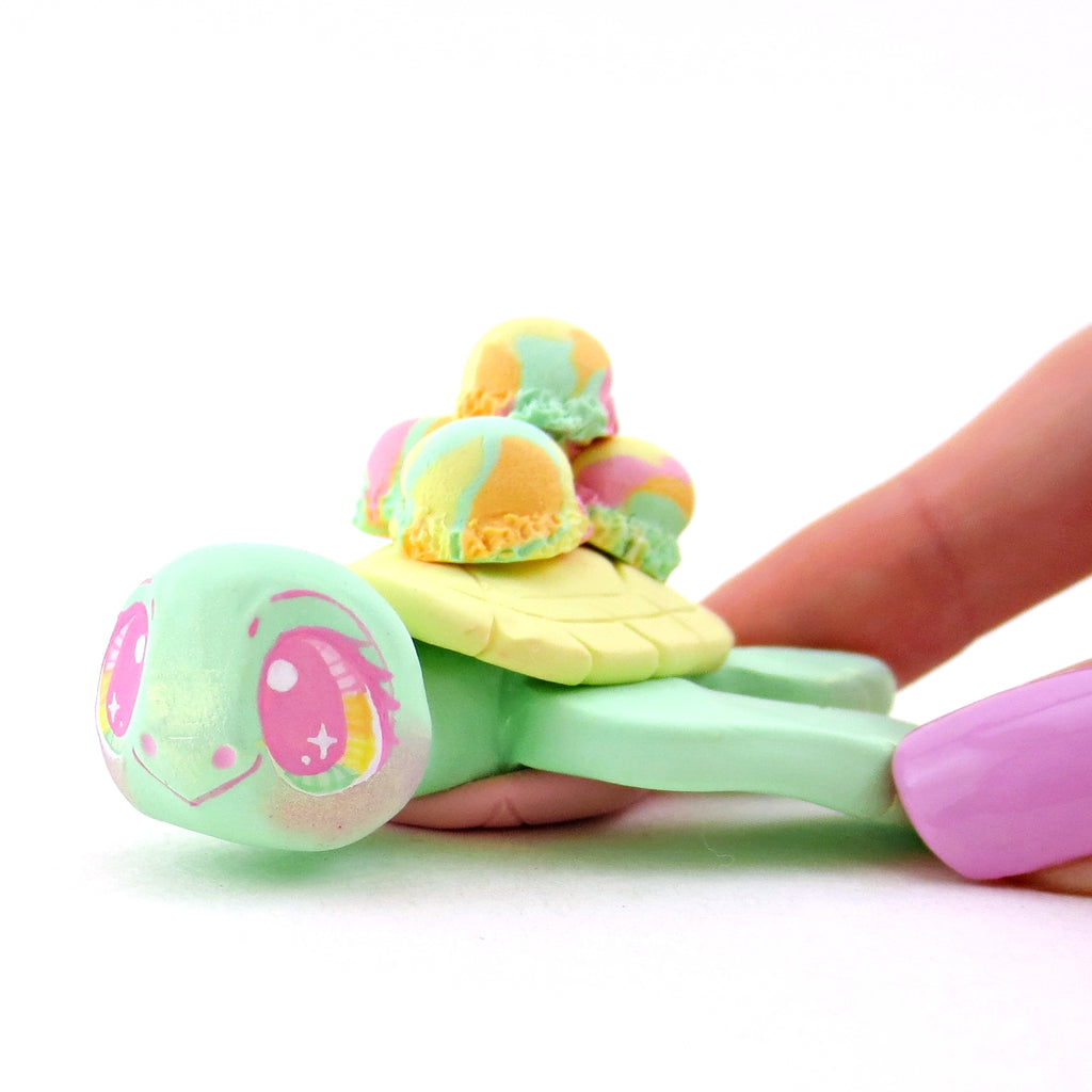 Rainbow Sherbet Ice Cream Turtle Figurine - Polymer Clay Ice Cream Animals