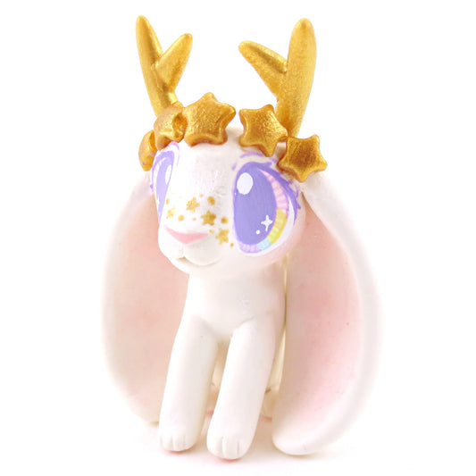 Golden Star Crown Jackalope Wolpertinger Figurine - Polymer Clay Animals